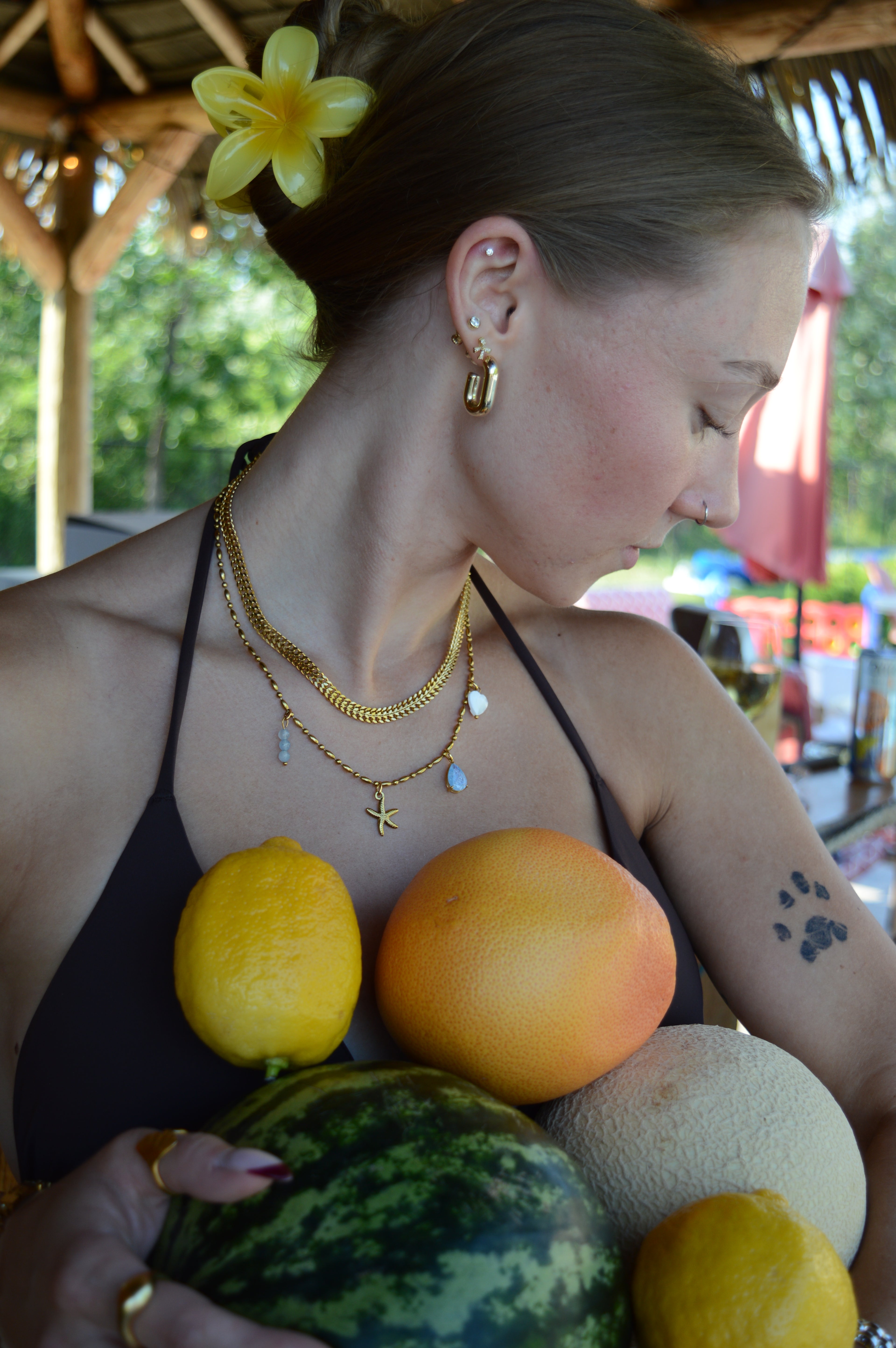 Azzure was born from my love for travel and my frustration with jewelry that doesn’t keep up with my adventures. Whether I’m soaking up the sun on a beach in Portugal, a whole month of city hopping in Italy, racing through the streets of Rome in the summer heat, or hiking up a mountain in Spain, I wanted jewelry that could handle it all. Jewelry that doesn’t tarnish, turn green, or lose its shine after a dip in the ocean or a sweaty city tour. So, I set out to create something — jewelry that not only looks beautiful but also stands up to the demands of a busy, active lifestyle. Besides, I was also tired of overpaying jewelry from brands that prioritize profit over quality. We offer the same, if not higher, quality pieces without the unnecessary markups